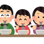 食事は、なぜ、お口の体操になるかというと食べ物を「噛む」からです。そして、「ふー」と熱い食べ物を息を吹きかけて冷ましたり、飲み物をストローで吸いこんだりすることもありますよね。そばやうどんをすすることもあります。だから、食事が、お口の体操につながるんです。